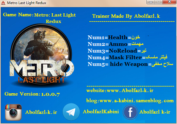 地铁:最后的曙光五项修改器Abolfazl.k版