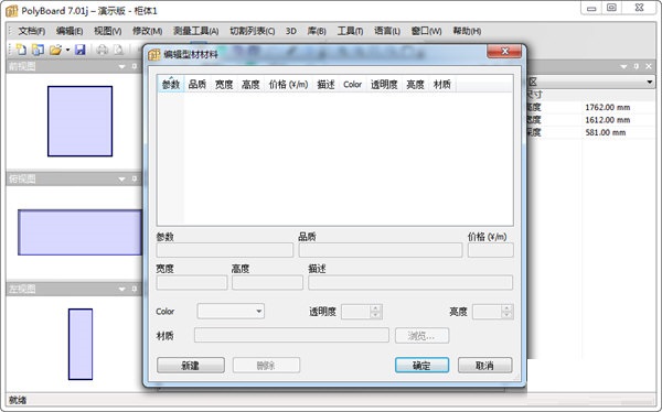 PolyBoard拥有静态材质模板列表:材质模板将各种材质与每一个橱柜组件相干联。