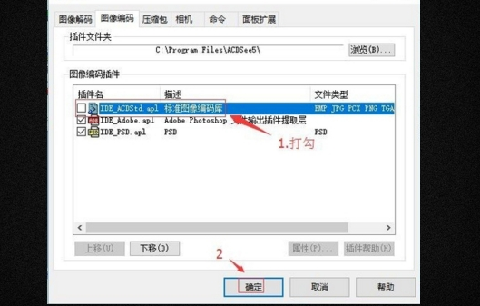 5、最初,在图象编码选项卡中,检阅并把IDE_ACDStd.apl 尺度图象编码库打上勾,然后单击肯定操控键位便可处理问题,以下图所示。