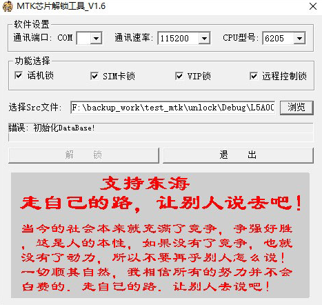 MTK芯片解锁东西MT原厂的版本文件里都有SRC文件,解锁时选这个文件。拥有CPU型号:6205、6205B、6208、6217、6218、6218B、6219、6223、6225、6226、6226M、6227、6227D、6228、6229、6230、6268T。
