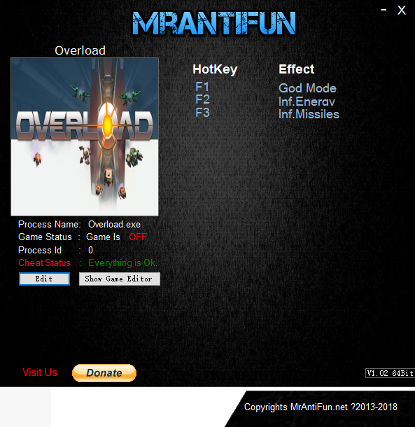 超负荷三项修改器Mrantifun版