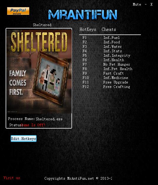 以上就是小编为你们带来的庇护所十二项修改器MrAntiFun版,还想要了解更多游戏攻略的话,就来游戏爱好者下载吧!