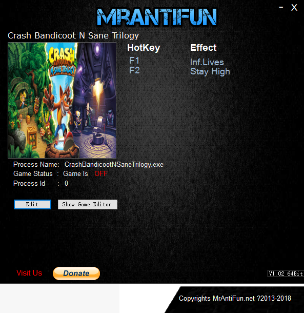 好了,今天的古惑狼:三部曲二项修改器MrAntiFun版分享就到这里了,想要下载更多类型的单机游戏和了解更多游戏辅助软件就来游戏爱好者,在这里你可以下载到各种风格的游戏相关辅助,快快收藏吧,更多精彩不容错过!