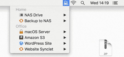 若是你需求同时办理多个长途服务器,那末软件内置的贴心小东西ForkLift mini可不要错过。以下图,它可以将多个服务器加入到菜单栏,让长途文件办理像当地磁盘一样便捷。