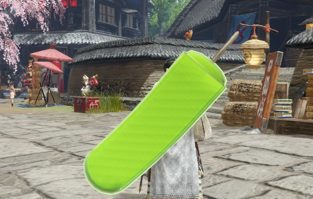 《怪物猎人崛起:曙光》绿舌头冰棒替换王国骑士大剑MOD帮助玩家改变武器外观,玩家可以通过该MOD将武器换成更有趣的绿舌头冰棒,看上去更独特。