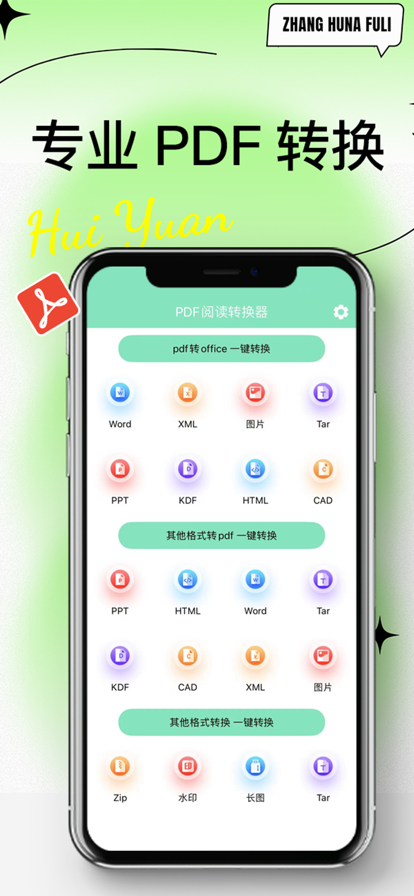 2.支持PDF、wps office、图片、表格、doc、电子书等多种格式文件互相转换!