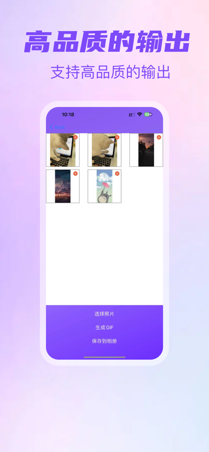 图片转GIF苹果版是一个图片处理软件,可以将各种类型的图片转换为GIF样式的图形,品质可以提升很多个档次,可以将相册里面的图片进行拼接然后进行升级GIF样式,制作起来都比较的简单,选择好图片然后再选择样式就可以了,都是免费的,效率很高。