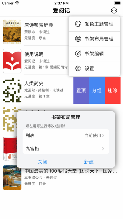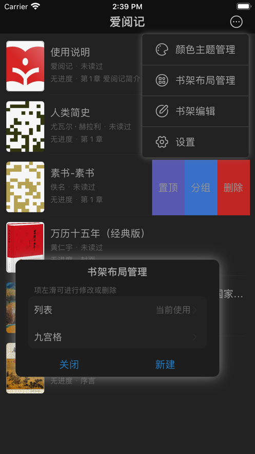 1.多种本地图书导入方式,书架包含图书排序, 分类整理等多种贴心功能。