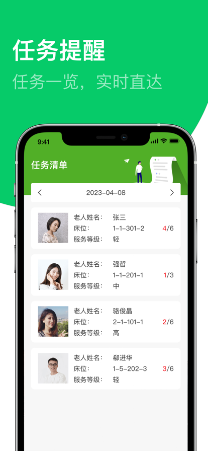 1、是一个专为养老机构人员打造的移动办公管理软件。
