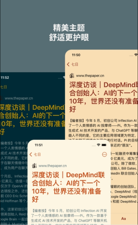 只读稍后阅读工具App苹果版是一个阅读保存类软件,可以将很多好看的文章都收藏到软件里面来,随时可以查询自己收藏的阅读内容,会自动的进行排版和优化,超多的精美主题可以去选择,专业的护眼模式,不管是白天还是黑夜去阅读文章都不会伤害到眼睛。