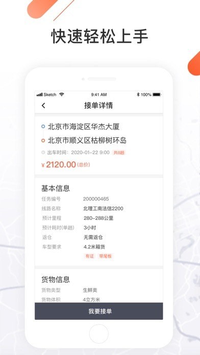 2、进入接单大厅,能够清楚的了各种货源信息,用户可以更好的进行使用;