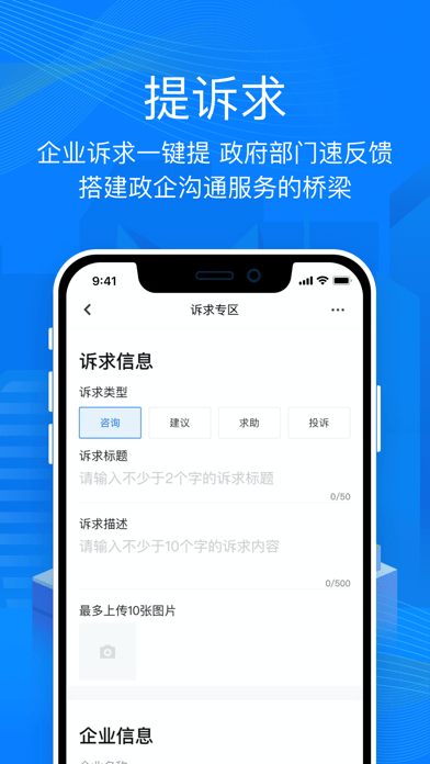 深i企苹果版是一个企业市场类软件,市场的行情都可以在线了解到,各大政策都可以及时去查询,办理业务都能免排队,直接提交申请就可以了,各种诉求也都可以在线提交,有任何的问题都能寻找相关的部门去沟通解决,企业的信息都可以在线查询。