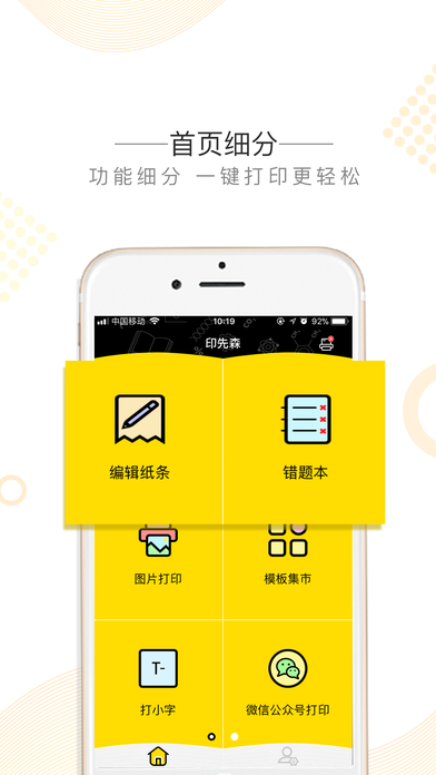 通过印先森苹果版打印服务软件可以轻松打印各种内容,只需要连接到对应的打印机就可以开始打印了,打印的内容不会模糊和凌乱,不管是图片打印还是错题打印都能满足你,输入好内容一键打印即可,效率都非常的高,打印的速度都很快,随时都可以利用手机打印内容。