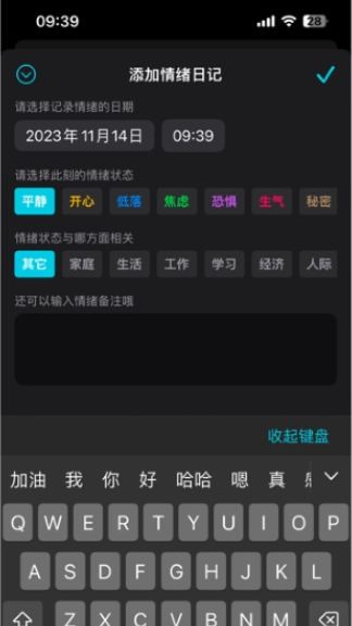 2、添加对应的文字以后,让自己的心情事件可以被记录下来