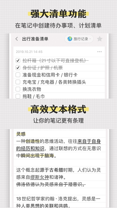 2. 多种记录形式:支持文字、图片、清单和涂鸦等多种形式的笔记记录,满足用户多样化的记录需求。