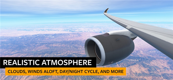 1. 真实物理引擎:采用3D风格呈现,模拟真实环境,包括白天黑夜、多种气候条件(如雨雪、风暴)以及飞机起落架动力学,提供照片级渲染效果。