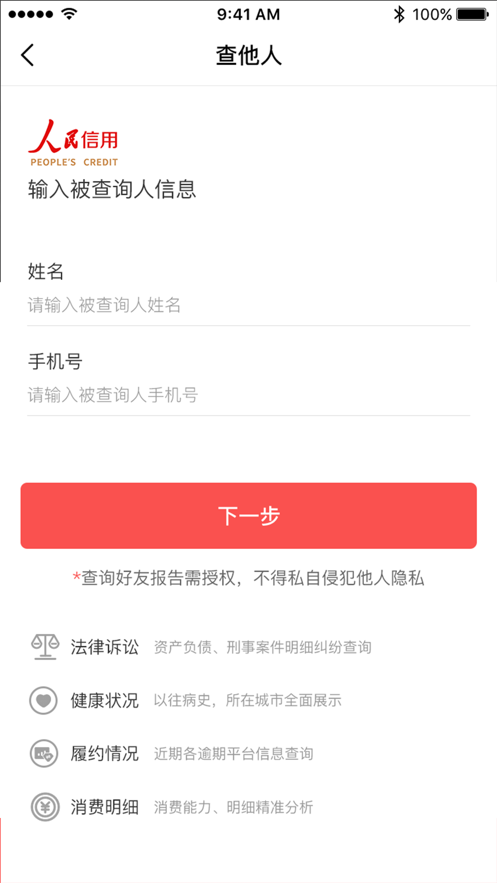 人民信用ios版是一款非常方便的手机信用评估服务应用软件,人民信用app自助研发了个人风险等级评估模型,可以帮助用户降低个人信用风险,一键即可快速查看自己的信用评估情况,避免失信,损害自己应有的权利,操作简单方便。
