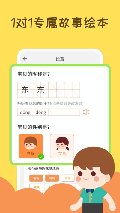 1对1专属您家宝贝的故事和绘本:根据宝宝情况定制适合的教育内容,呼唤宝贝的小名,引导宝贝在故事中感受亲情、友情,学会好品质(勇敢,谦让,勤劳…),树立好习惯(讲卫生,不挑食,懂礼貌…)。