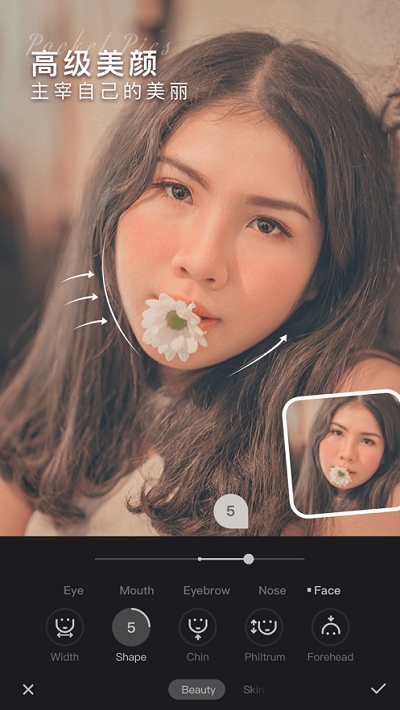 瘦脸、磨皮、大眼等丰富美颜效果,仙女就要美美哒