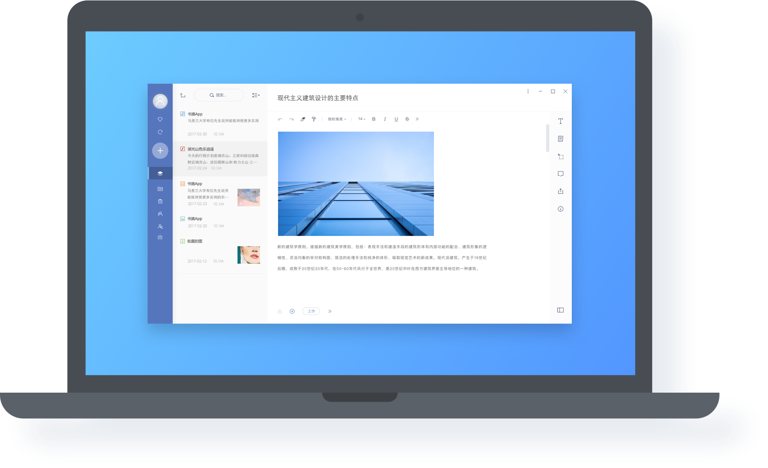 提供多样化的记录形式:笔记、图片、MarkDown、iWork、Office、PDF等格式。