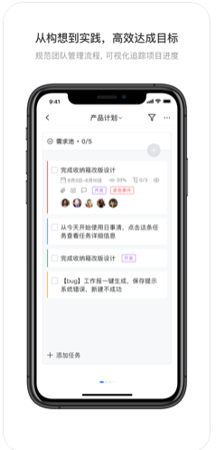 ● 计划:无论年度计划、周月计划、项目计划…都能轻松搞定。每一个任务,你都能编写详情、上传附件、随时讨论,工作进展一目了然。每个人都知道他该做什么、为什么做。