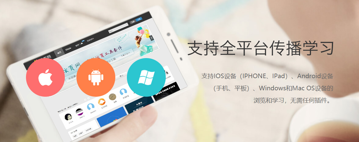 支持IOS设备(IPHONE、IPad)、Android设备(手机、平板)、Windows和Mac OS设备的浏览和学习,无需任何插件。