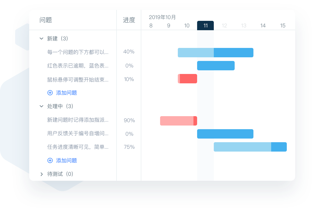 统计、动态、成员、问题都将一览无余,不同的颜色也为项目管理增加几分色彩。