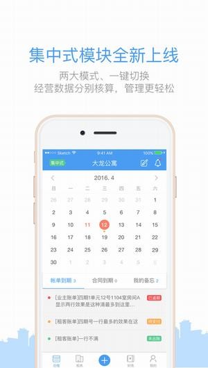 待办事项只能提醒,采用日历面板展示账单、合同、备忘提醒,用美好的方式了解每日待办,让你的公寓管理的每一天都井然有条