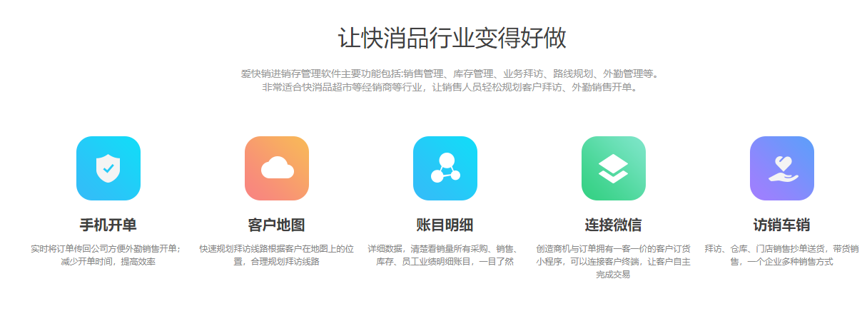 外勤拜访客户时,在客户现场可以定位签到,考勤打卡,然后进行正常的销售订单的跟进,客户跟进,离开客户门店或场所后,定位签到打卡,拜访下一家客户,每天按预设的线路进行拜访,其特色是在客户现场的打卡签到考勤。
