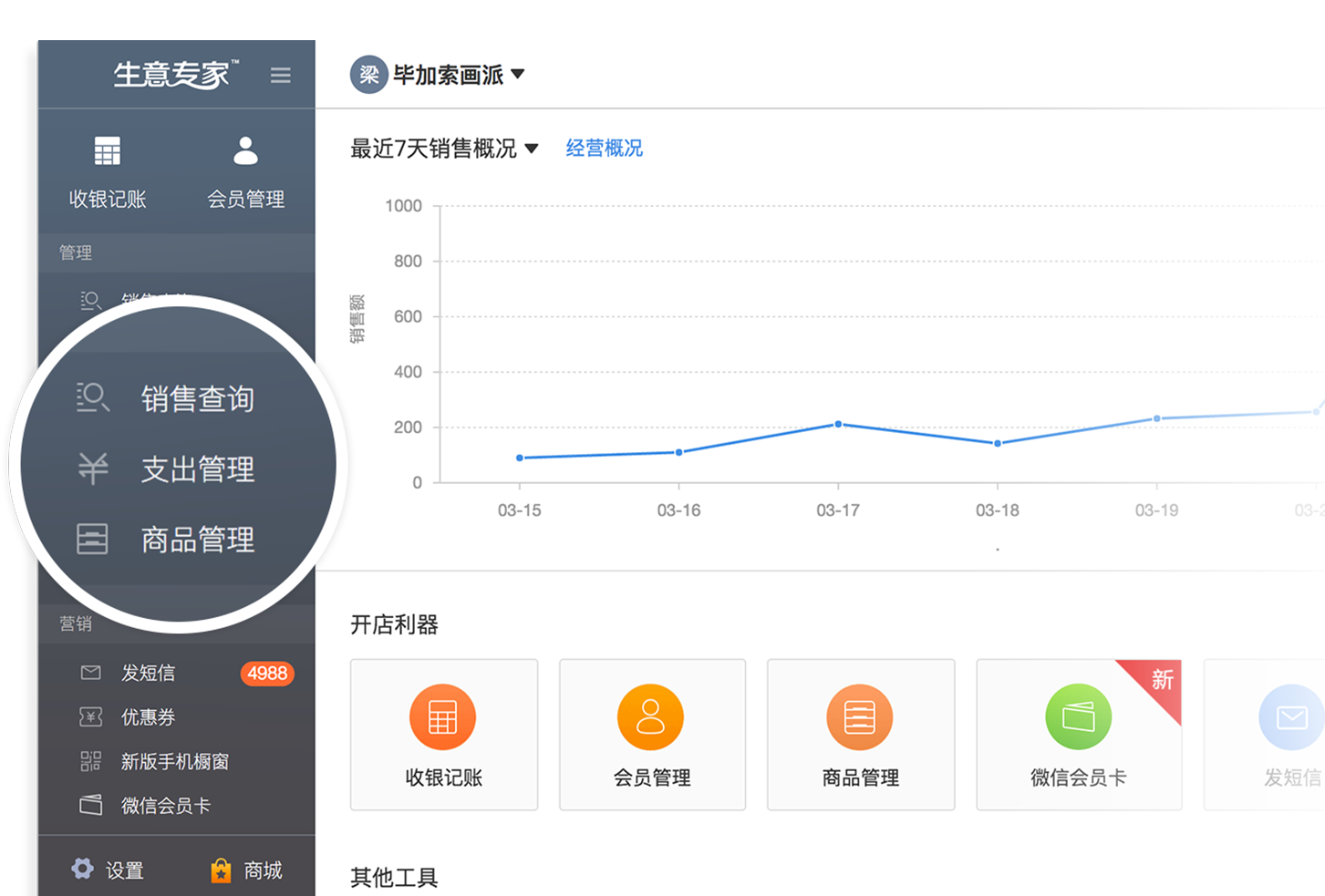 生意专家能够管理会员和日常销售,提升店铺购物体验,增加销售收入。