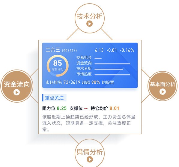 1、该软件将每天加工分析而成的大数据以个股为单位进行重组,每天9点针对每只个股形成的分析报告库,用户只要简单输入个股代码,就可以获得对它的详尽全面的分析。