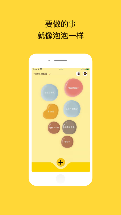 待办泡泡APP在市场内一众待办事项APP内是比较有特色的,其采用卡通化的画面同工作计划安排形成配合,把所有编辑完成的工作安排全部都变成泡泡形状,同时也有优先级别和先后顺序,可以设置提醒完成工作安排的时间节点,同时制定好所有的内容,让自己的人生过得非常充实,养成定时完成工作的习惯。
