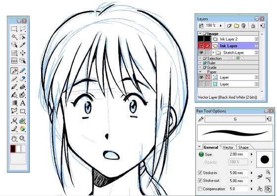 从分镜、底稿、分格分割、描线、网点、背景和效果到输入台词,所有制作漫画的程序都在电脑上进行。