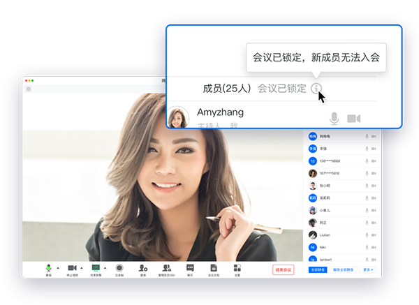 该软件支持电话呼入,手机、座机和会议室电话一键接入,不收取额外服务费,随时随地均可开启高清、稳定的电话会议,会议全程加密保护,保证参会者隐私。