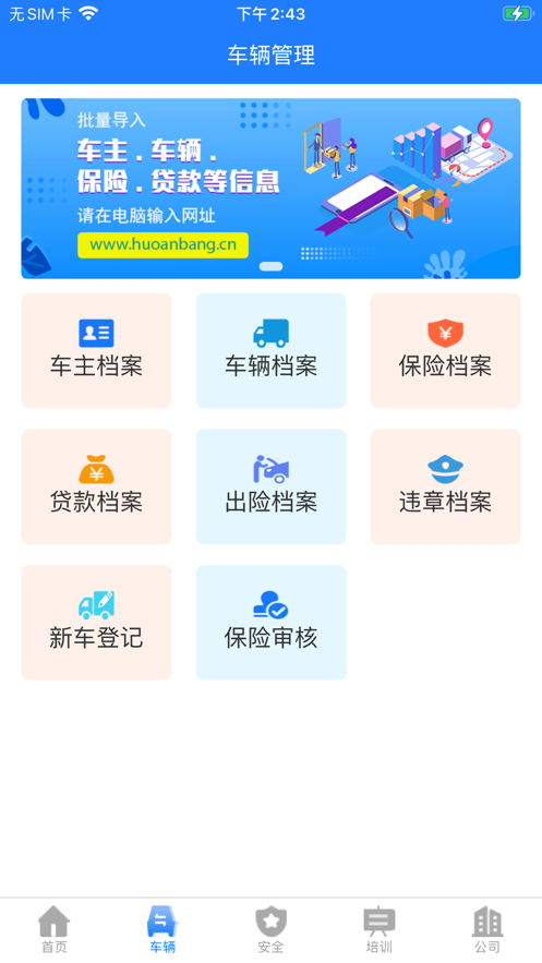 货安帮公司端是一款强大的在线车辆管理软件。它能够为用户提供非常完善的车辆管理,包括车辆电子技术档案管理、 车主驾驶员管理、车辆报价单、出险管理、违章管理、保险管理。年审、能够给用户带来运输车辆管理,运输订单管理,可在线派单,调度车辆等等。