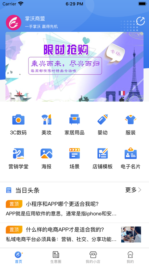 掌沃商盟可以让商家用户利用这款软件,然后对自己的店铺进行高效率的管理可以及时发现店铺的运营环境。同时系统提供智慧名片,营销服务管理的平台。