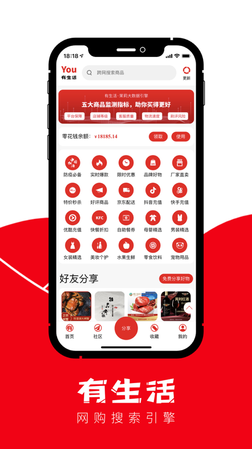 有生活这款软件汇集了淘宝京东拼多多饿了么等平台各大优惠券每天平台精选千款优惠商品,为您推荐性价比高优质好货。