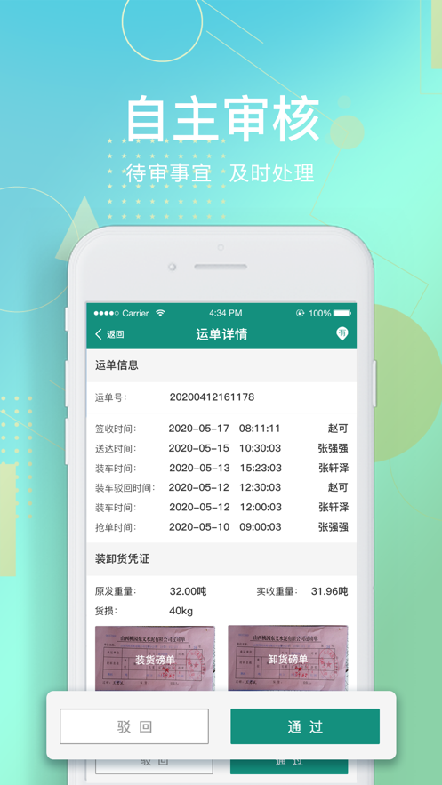 物流公司审批人员可以在移动办公的情况下,快速进行业务的审核。