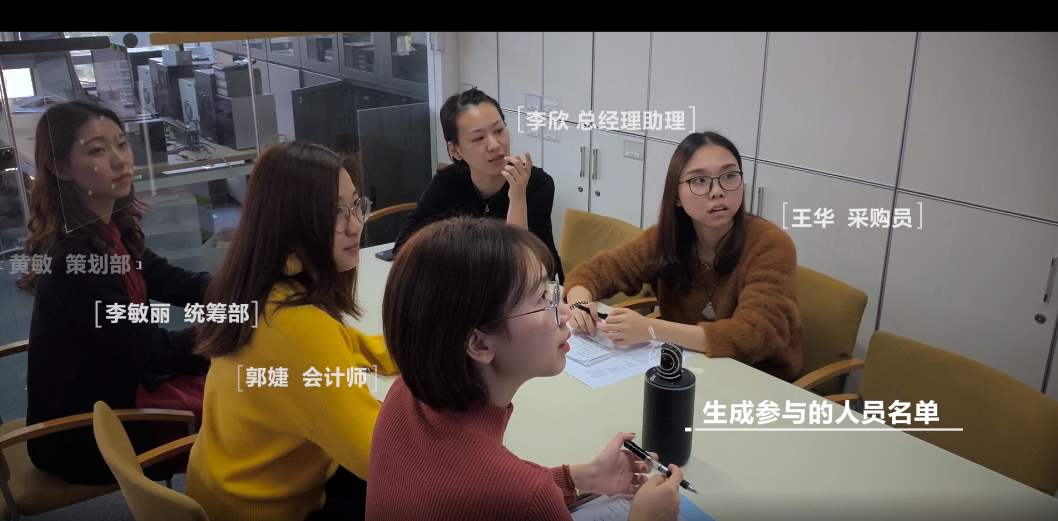 360°全场景/智能辨别跟踪发言人/自动锁定人脸/生成参会人信息/生成会议纪要;