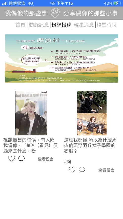 我偶像的那些事这款软件,可以让用户第一时间了解到自己偶像的金矿和活动等重要讯息,可以看他的动态,生活等等,并且还可以和其他粉丝一起交流分享。可接收相关的资讯、文章,也能投稿和接收讯息。
