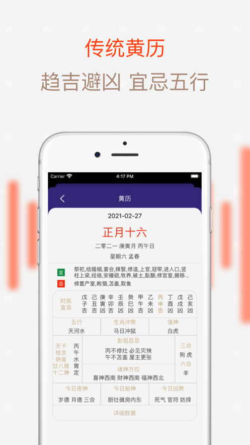 精简简练,加倍效率快捷,随时疾速翻开。宜忌了如指掌。