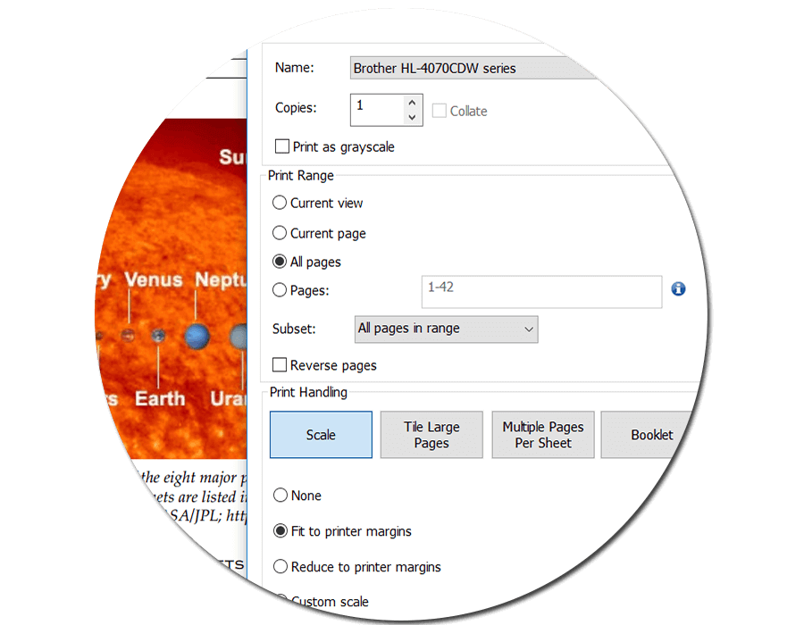 通过动态缩放和实用的放大镜工具,不但可以轻松愉悦地浏览PDF文档,还不会遗漏文档内容中的任何细节。
