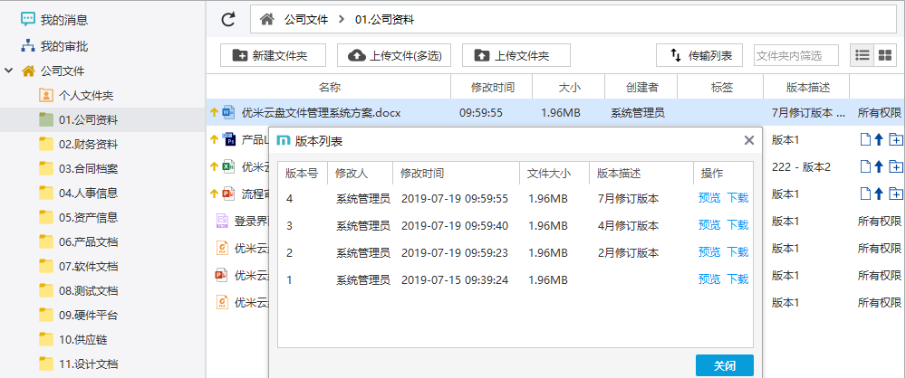 编辑完成后,文件可以自动上传更新到服务器,生成新版本,用户可以添加版本描述