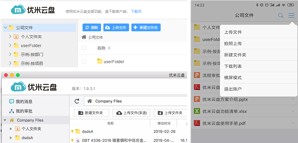 移动端全平台覆盖,支持拍照上传,文件上传,下载,预览,新建文件夹,重命名等移动端常用操作,方便用户移动办公,随时随地地文件访问、共享和协作,工作不间断,商机无遗漏。