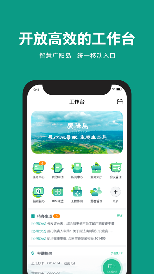 广阳岛移动办公为用户提高了非常多便捷办公功能,可以线上快速处理各种工作,实时查看公司的通知,线上便捷请假,快速传输各种工作文件等等,对这款软件感兴趣的朋友们赶紧下载体验一下吧!