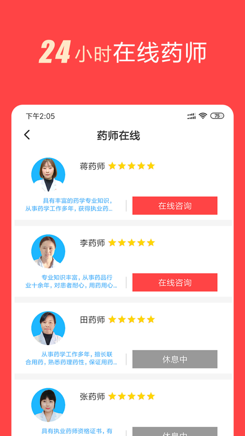 3.帮助了解药店详情,药师信息、主要供应商、24h售药、医保等。