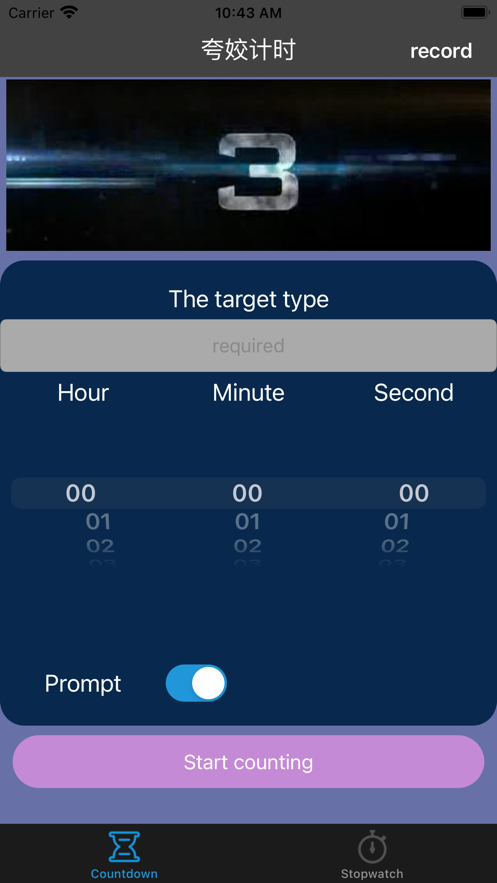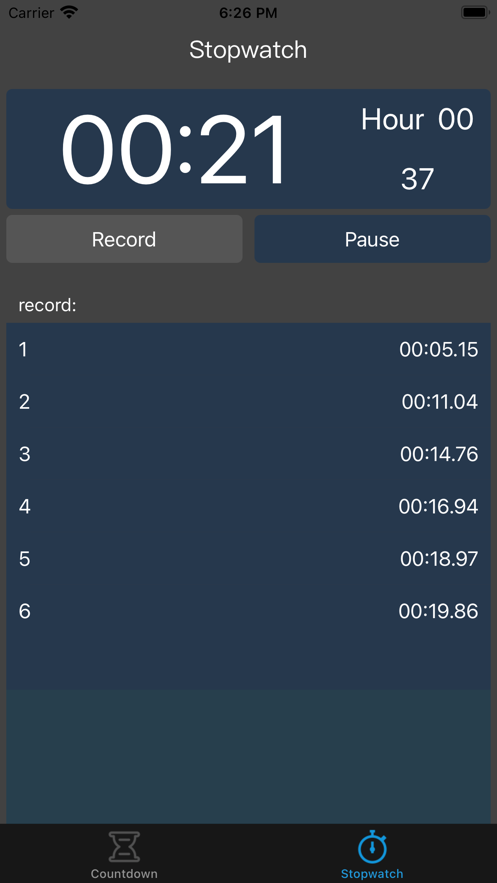 3. 间隔计时器: 将多个计时器拼接组成一个功能强大的计时器。该计时器会在每个计时器开始的时候发出警报,并在计时完成的时候,自动开始下一个计时器。该计时器时候锻炼的时候使用。