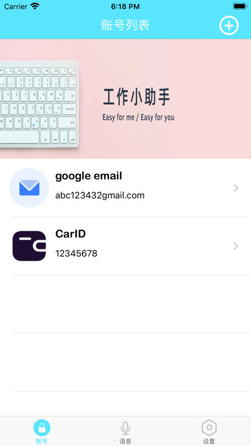 用户可以通过便捷记录小助理记录下各种账户以及密码,且非常的安全可靠,不用担心会泄露出去,再也不用担心忘记密码而感到烦恼,本App无任何网络连接,所有信息保存在本地,安全可靠。