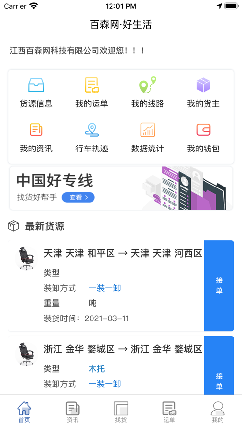 用户有任何需要运输的物件都可以用百森货运来下单,会有专业的官方配送人员上门取件,平台上所有的货运司机都有丰富的驾驶经验,此APP即是为实现货主、司机的业务功能而开发。