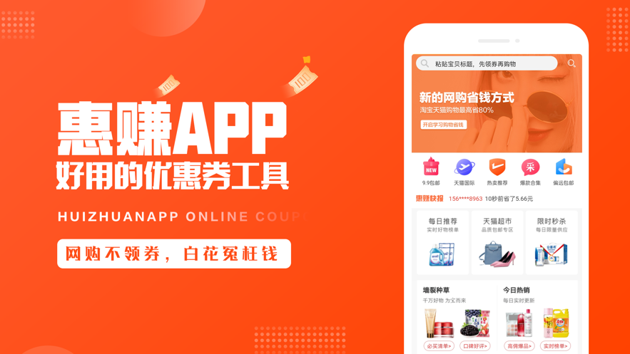 惠赚是一款能够为用户带来巨大福利的购物软件,用户只要登录就能够轻松领取这些优惠券,之后在购物的时候,用户可以使用这些优惠券省下非常多的钱。操作简单方便,海量优惠券,购物之前先搜券,大额优惠券随领随用。